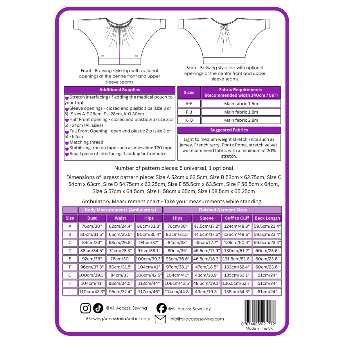 Anna Maria Batwing Top Sewing Pattern, Ambulatory, Sizes A-I